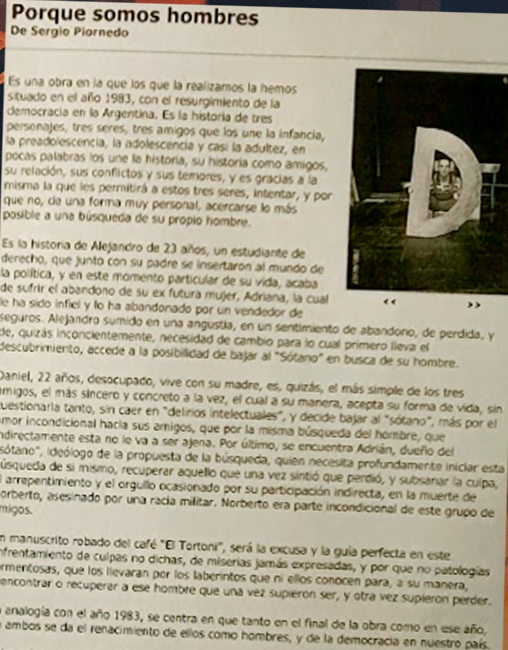 "El psicoanálisis y el teatro hacen de Sergio un dramaturgo especial. Guardo un muy grato recuerdo del amor de Sergio por el mundo del teatro."